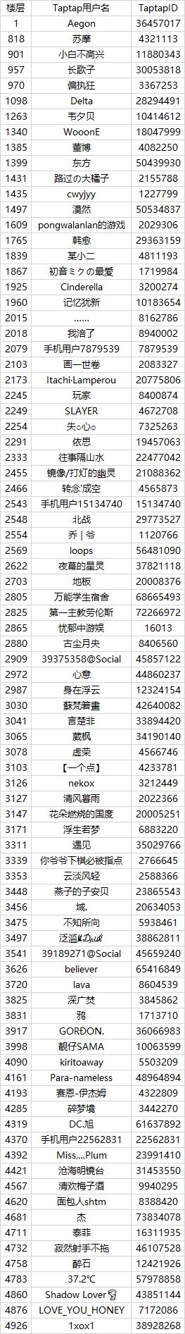 活动正式结束!经过官方和几位玩家小助手的共通甄选,实际共有85名玩家获得第二次测试的资格,名单如下: