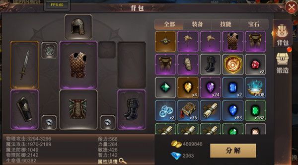 5. 装备套装:凑齐并穿戴相同词条数量的装备,可激活套装属性,不同的套装,套装效果不同。
