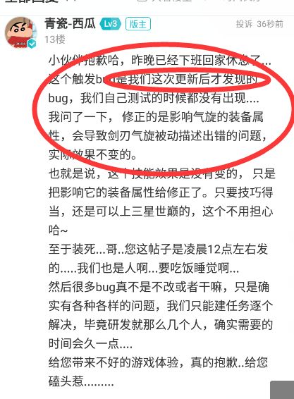 我们在重置版刚出的第二天就反馈了这个bug的详细触发方法并且提交了视频,聊天记录8月12号反馈的,但是当时客服和研发说没有问题,然后我们第二天就一堆3星出产了,最快1分25秒通关,一周后8月20号更新以为是修复了bug结果呢,依旧没有。并且不承认有任何bug,直至今天强行热更新掉和谐bug才跳出来说才发现的bug。是你们研发无能还是我们玩家都是傻子呢?而且说装死是因为12点要休息,你们9点半更新就不休息了??我们可是9点半更新完就知道你们更新了啥,然而你们却说需要休息???