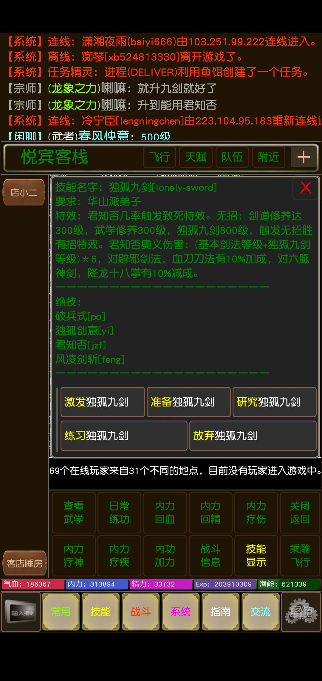 练习:一些简单的武功可以进行练习提升等级,但过于高深的武功自己练习是无法升级的