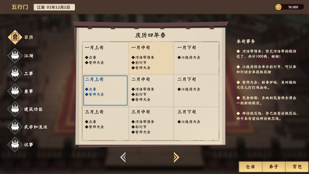通过一段时间实验和内部讨论,我们决定在保留世界观(市井化低魔武侠)、UI和立绘美术风格、重叙事、门派养成等机制下对游戏进行较大规模重构,计划包括以下一些方面(所有截图均是开发中版本,不代表最终品质):