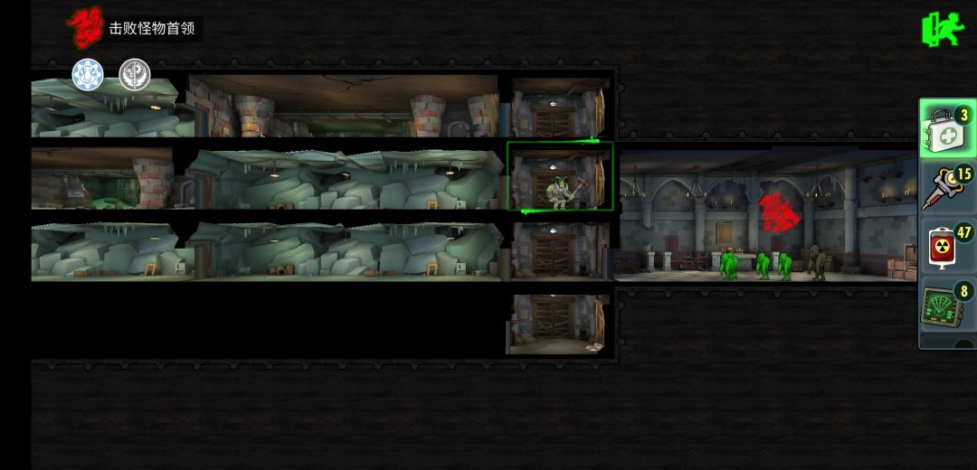如图中的大boss,如果我们要打它,那我们至少要两个复活箱来复活输出和医生,这就亏大发了。那我们何不理性退出,挑战失败,却拿着奖励再刷一次,岂不美滋滋。