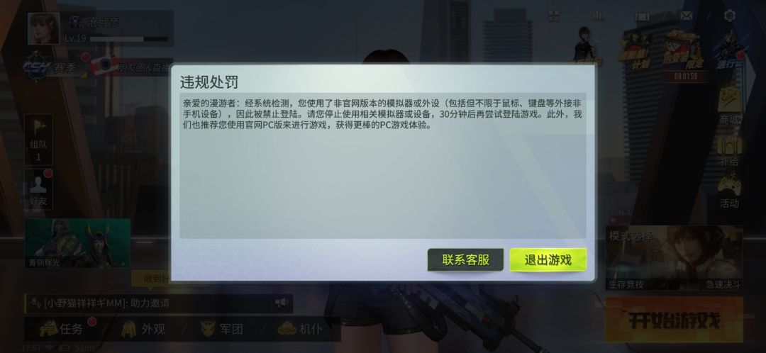 我什么都没做,玩着玩着就说我违规了,我也没用模拟器,也没用外设,什么也没用就说我违规