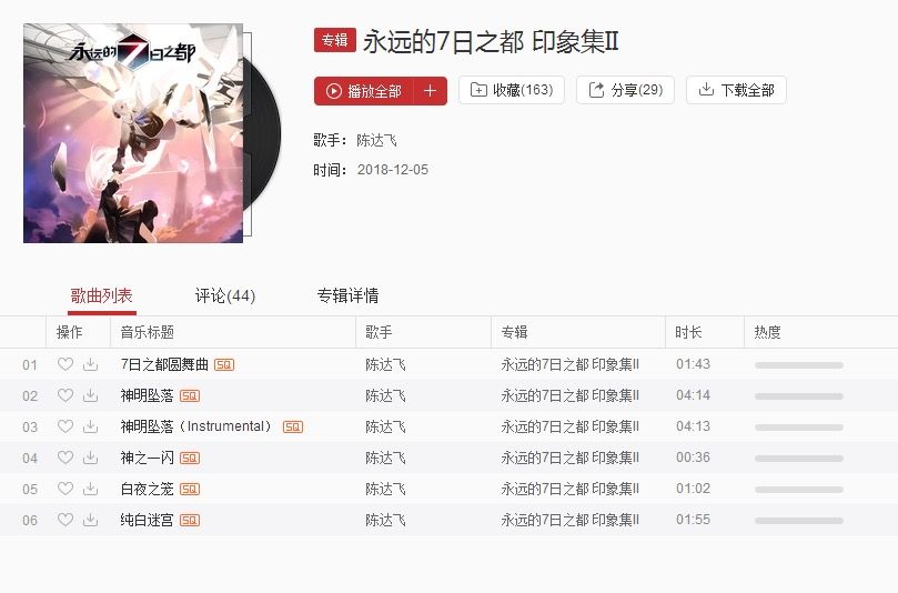《永远的7日之都 印象集》:https://music.163.com/#/album?id=37029038