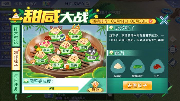 QQ炫舞手游端午节的一系列活动中,我非常喜欢“甜咸大战”,这也算是对甜咸口味粽子的投票吧,看看喜欢甜粽子的玩家多,还是喜欢咸粽子的玩家多。对我而言,一直都喜欢甜粽子,蜜枣的粽子也是每年家里端午节必备的食物之一,所以我也是站队甜粽子一族的。