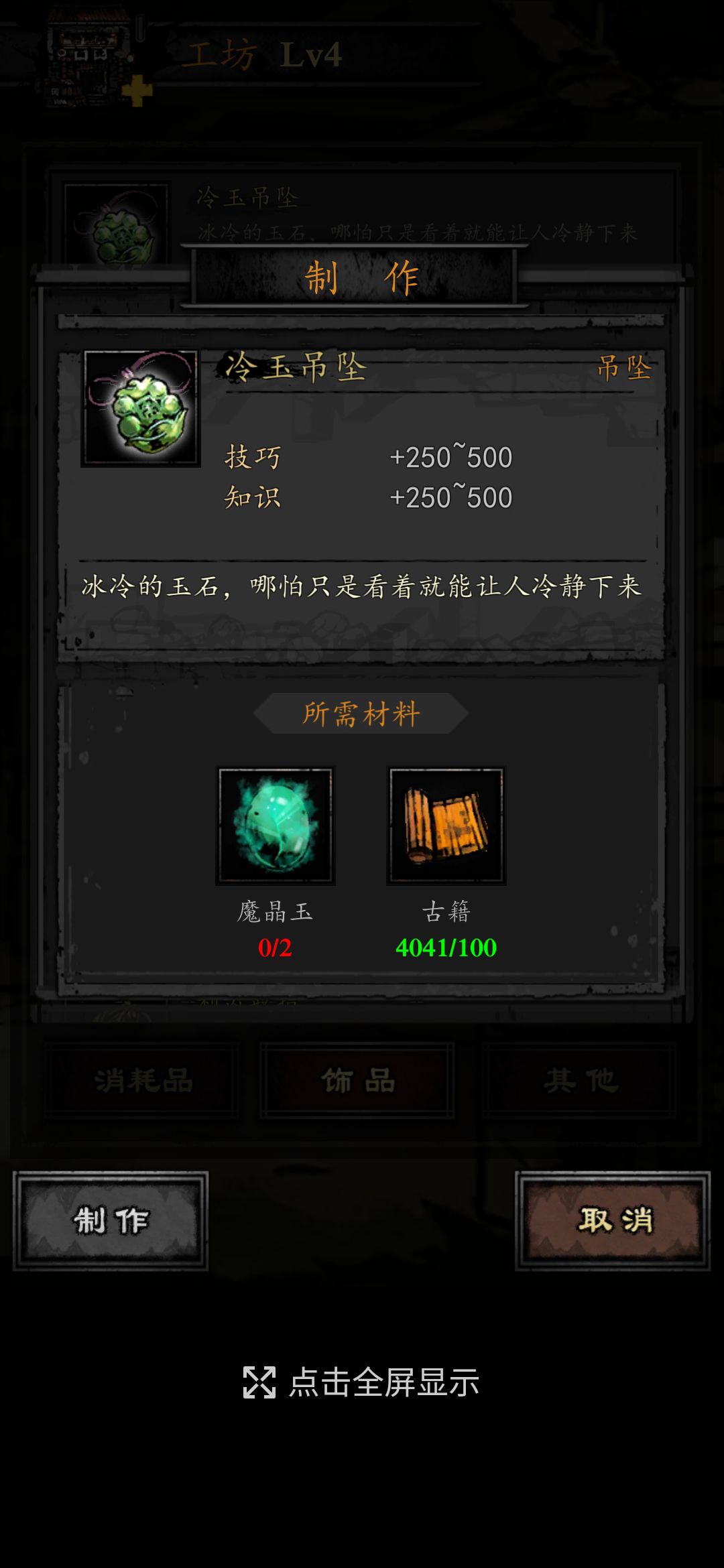 *冷玉吊坠,要求:4级工坊。属性不错,尤其是回蓝。