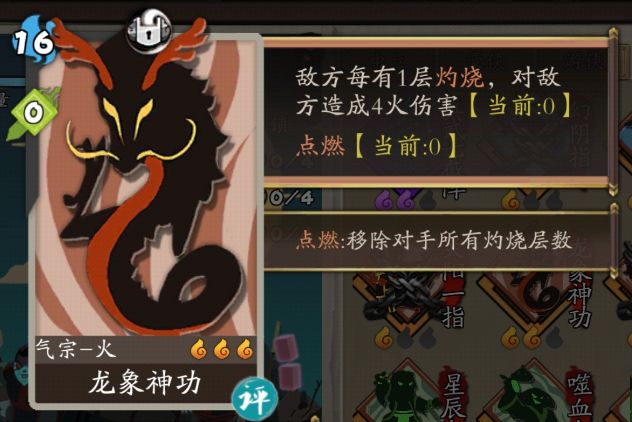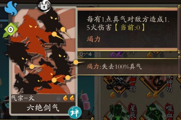 1星时“1火伤害”,3星时“2火伤害”,升级后只消耗一半真气。