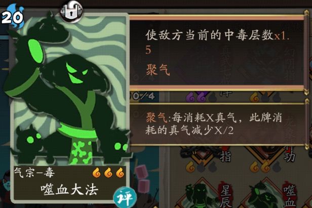 1星24真气,2星22真气,升级后“中毒层数*2”