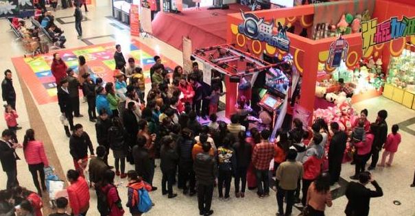 在逛商场的时候,时常会听到某一楼层传来喧嚣的电玩音。顺着音源方位走去来到电玩门口,可以看到一群人在一台大型台机面前围观,大概就是图中这样。