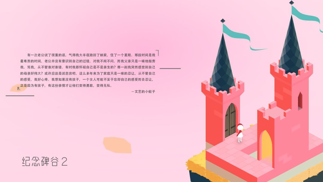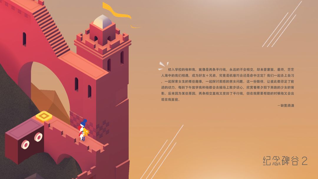 “图腾”这位纪念碑谷的老朋友,相信给不少的谷粉带来了满满的感动。从谷1里牺牲自己为艾达公主铺路,到谷2里陪伴送别女儿后的萝尔。朋友的陪伴,是雪中送炭,也是锦上添花。关于友情,谷粉们有怎样的故事分享给我们呢?一起看看吧~