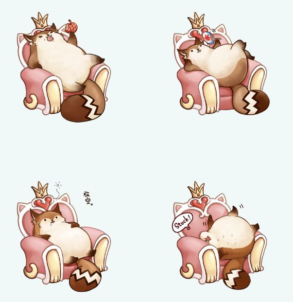 不仅如此,阿狸还会以各种坐姿来展示作为“肥宅”对美食的喜爱,还有饱餐后的幸福感和满足感!