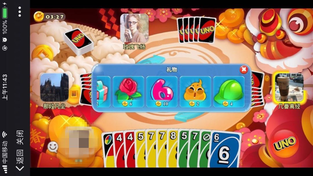 聚会模式下,打开定位权限可以跟身边的UNO玩家一起玩,适用于过年频繁的小伙伴聚会