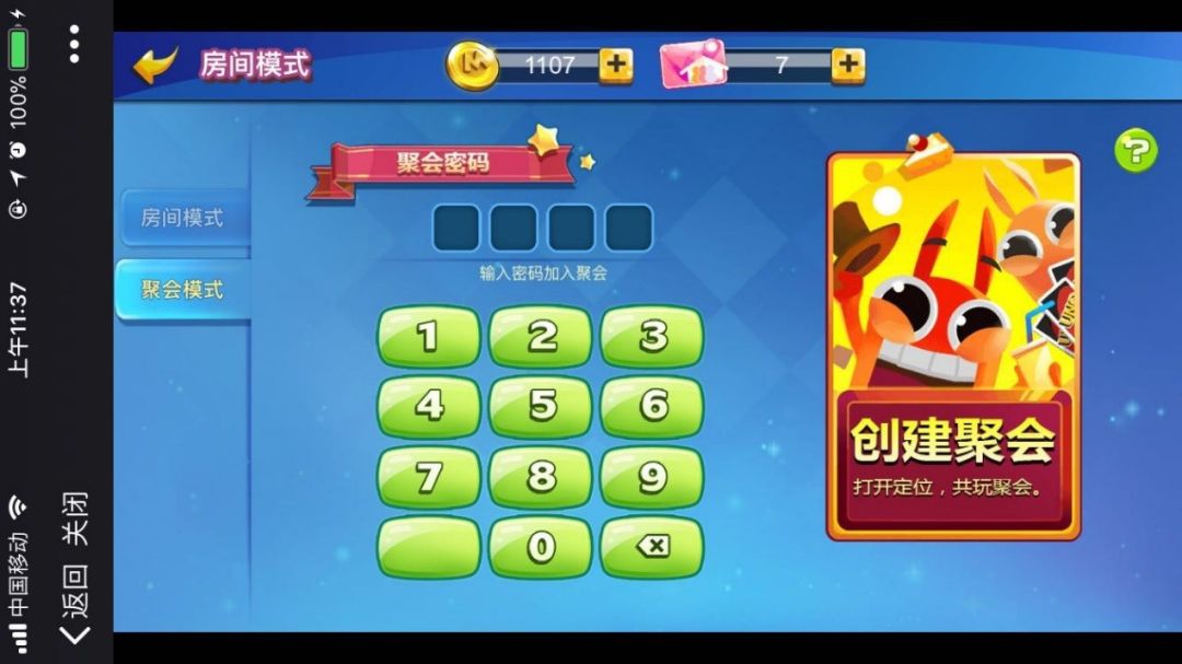 房间模式包括建房间和线下聚会两种选择