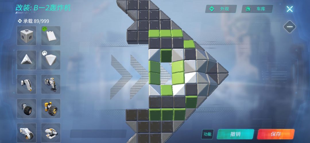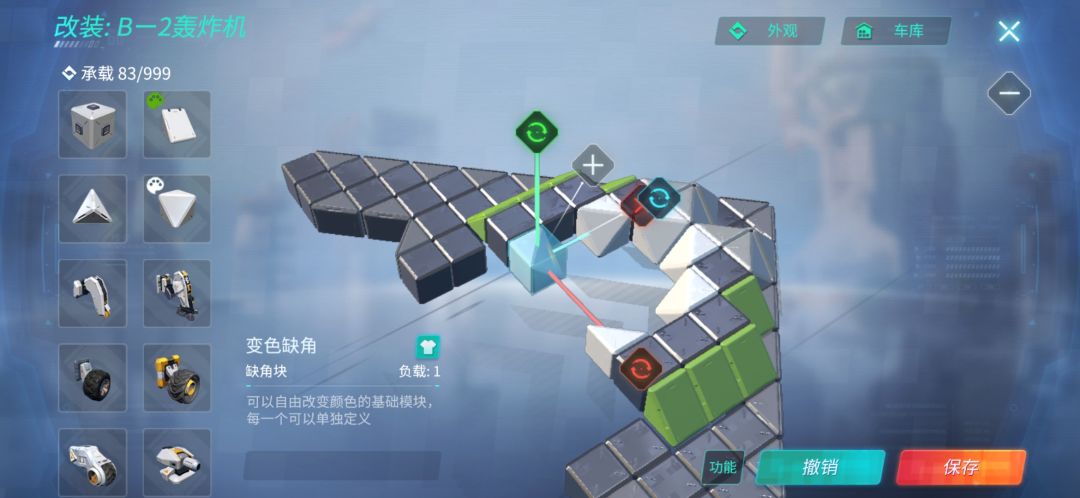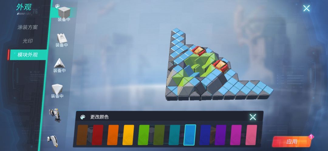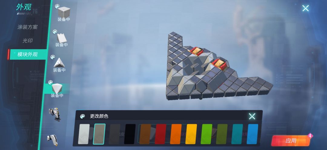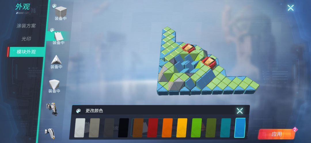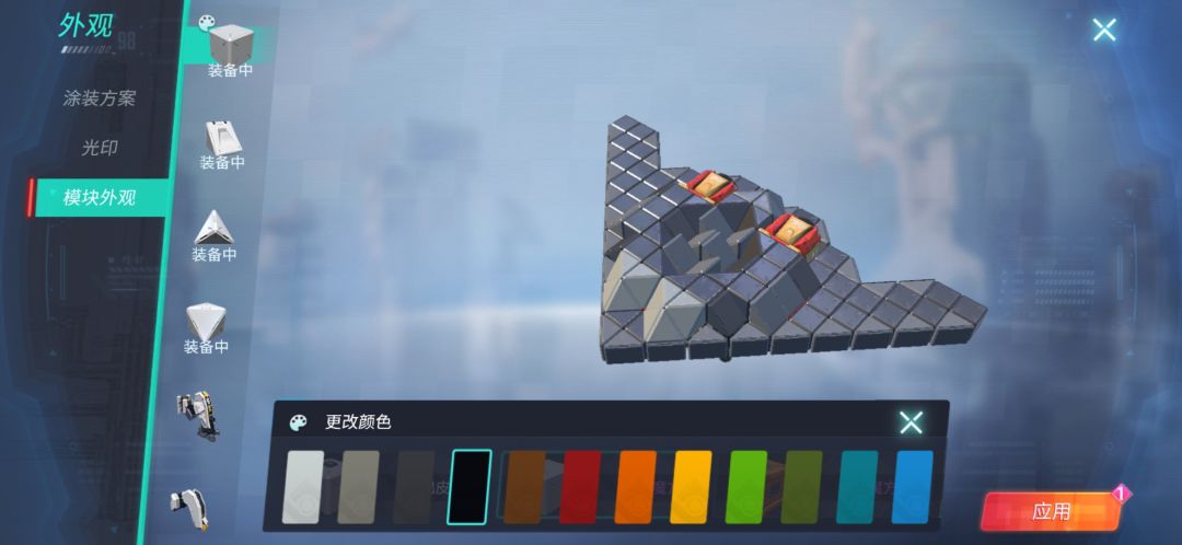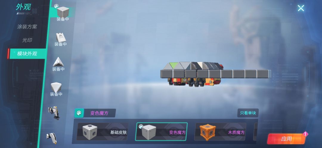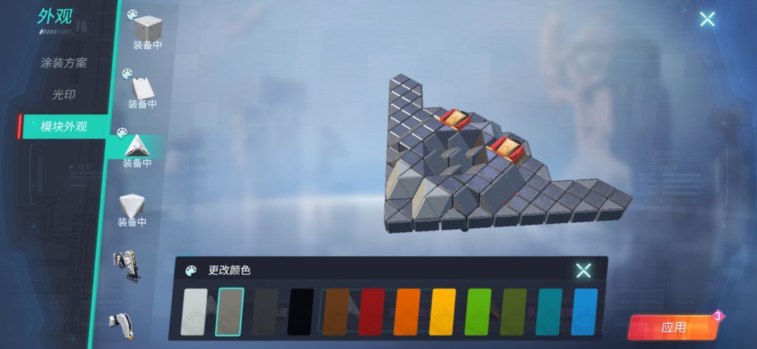 点右上角[车库]旁的[外观]再点[模块外观]