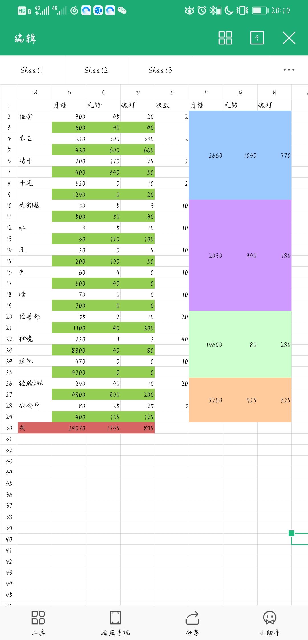 这里只统计了大家常用的,像气泡,精华,宝石则没统计。