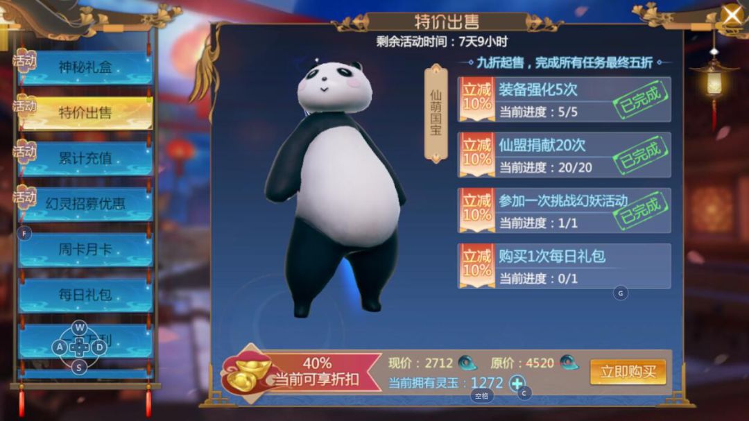 活动期间,呆萌的国宝时装限时特价出售。完成任务最高还可享受50%折扣,半价购买呆萌国宝时装。