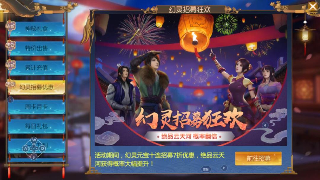 4. 抽不到绝品幻灵?获取概率太低?仙剑4手游熊猫月狂欢,同步开启幻灵招募活动。活动期间,幻灵元宝十连招募7折优惠,绝品云天河幻灵获取概率大幅提升。1680元宝限时十连招募,绝品幻灵等你共闯江湖。