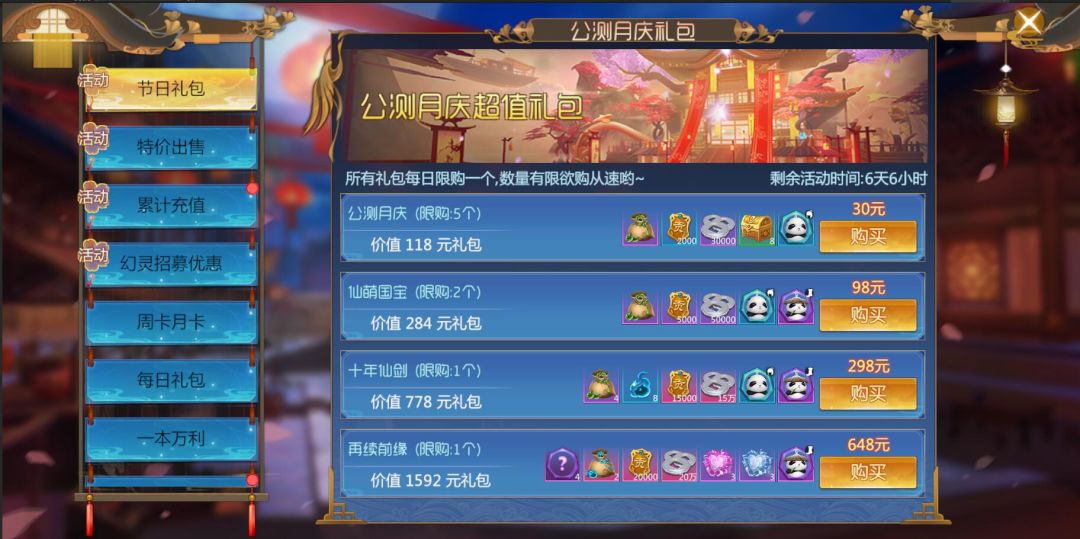 1. 不知不觉间,仙剑4手游已经上线一个月了。为了回馈仙友,月庆期间,将会上架月庆超值礼包,购买礼包还可获得可爱的熊猫灵符,无论通用性还是属性强度都极高。还有各种惊喜好礼等你来领!