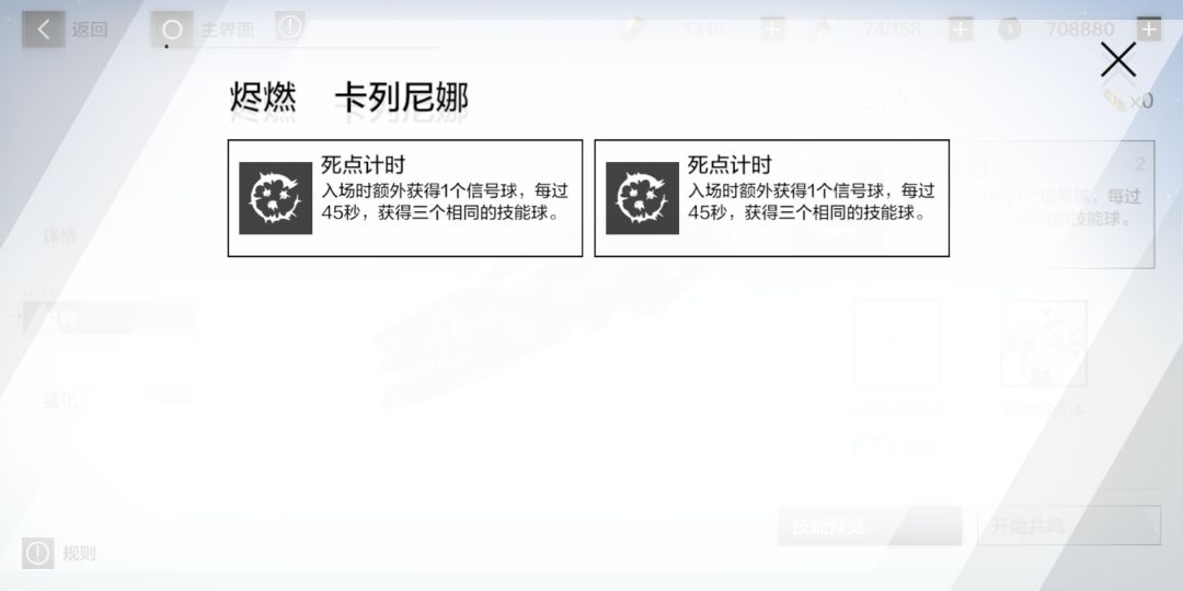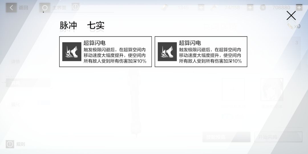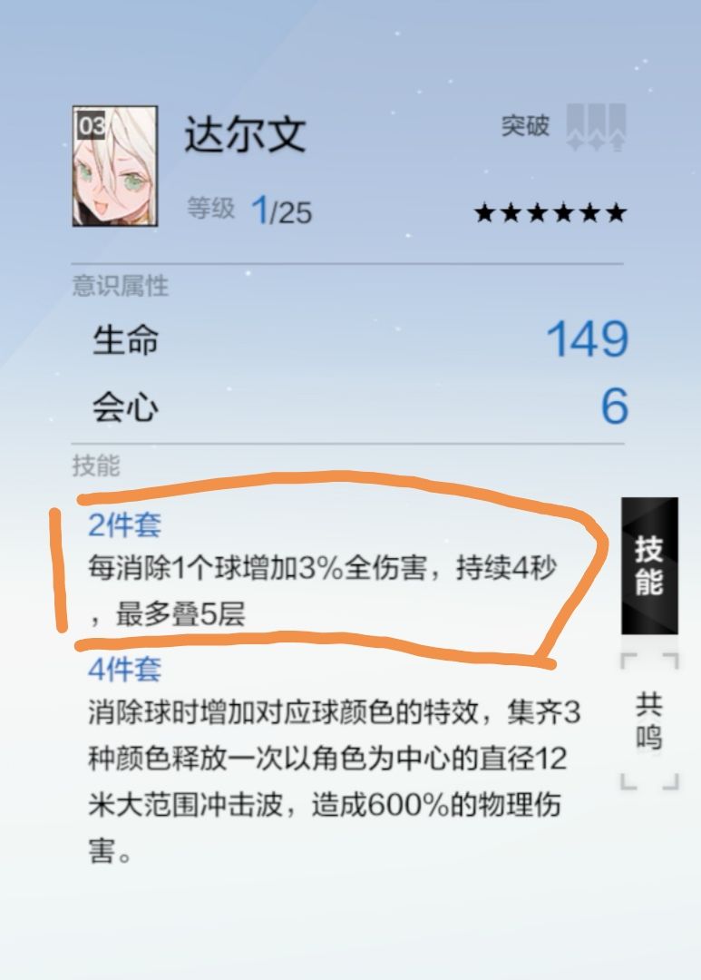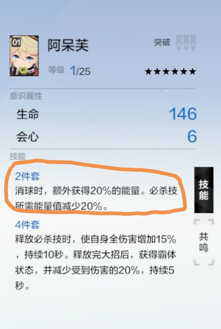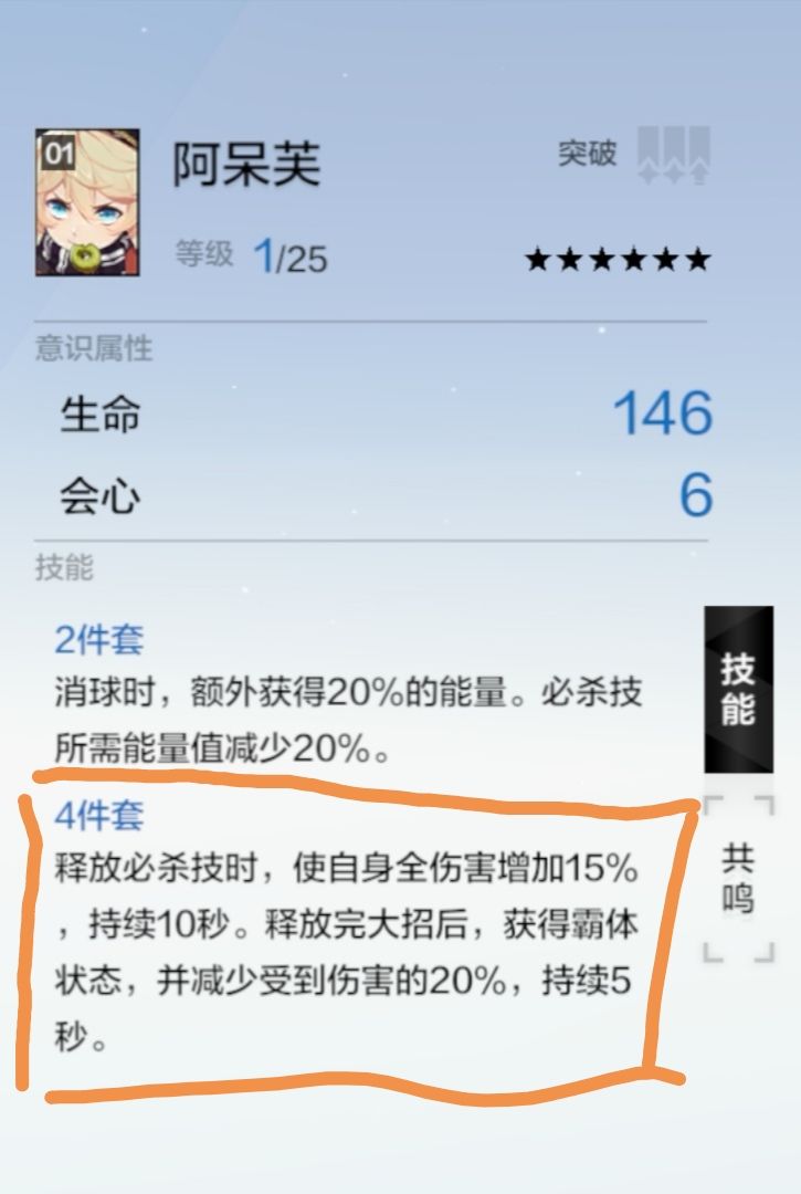 2.意识意识共鸣条件,相同意识、任意位置一个,每个意识两个共鸣技能,技能随机,可重复共鸣。一槽和二槽的共鸣技能也不一样,详见下图。