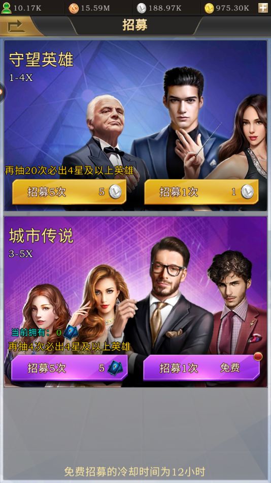 既然是商战,必然需要你的城市中有一些城市英雄。这些城市英雄不仅能够维护城市秩序,打击罪犯,同时还能够帮你抢占资源,镇守领地。那么英雄角色最主要的获得途径,肯定就是招募啦!而且分为普通招募和高级招募,招募出来的品质肯定是不一样的哦。