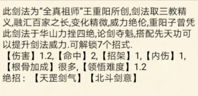 可以明显看出,匹配后的全真剑法伤害增加了20系数,这正是王重阳纵横江湖,打下中神通威名的关键