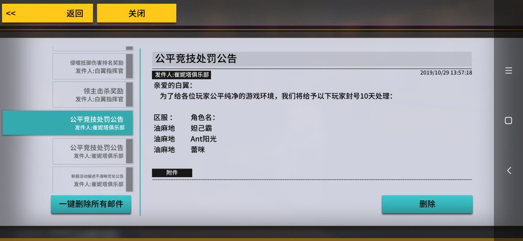 菜鸡一个并不关心排行榜啥的。。不过这哥们的id有点秀印象挺深的。。。。发个全服邮件通知大家以为是好东西开开心心点进去封号公告,没东西就算了,你通知全服封的号现在还能玩是啥意思啊。。低调点没刷成五分钟通关就不管了