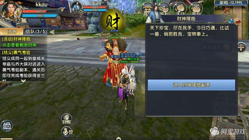 “一起组队去《卧虎藏龙2》中,开黑组队,刷财神降临啊!不仅能在财神降临中获得各种特殊奖励,还有更多丰富的副本咱们一起体验”