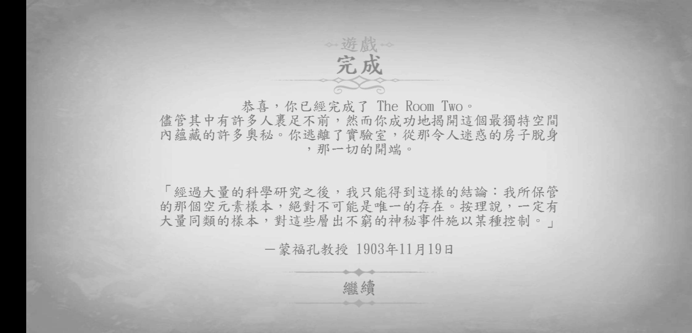 太棒了,room系列的解谜真的很爽啊,虽然作为2代画质依旧非常高,就是不足的是太短了,难度略低,无需攻略都能完成,以下通关截图纪念。