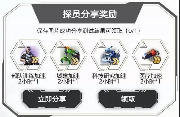 完成测试后,保存图片并分享测试结果即可领取丰厚奖励。探员分享奖励