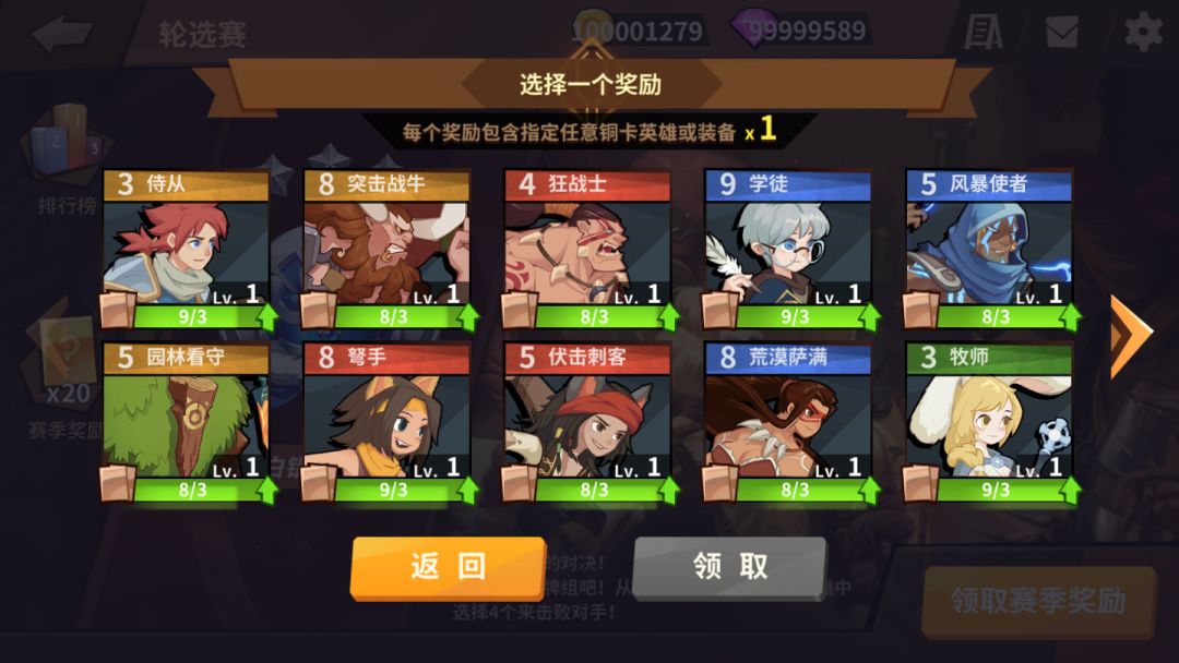 高段位的赛季奖励可任选金银铜卡,但品质越高,数量相对越少。