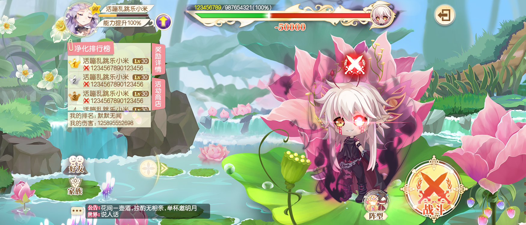 对西蒙的伤害越高,贡献就越大,从而获取的奖励就越丰盛,在与西蒙对峙的界面,点击战斗则能够直接与西蒙开启厮杀。首先净化西蒙需要调整好自己的阵容,才能够有效的对西蒙构成伤害。西蒙的伤害十分强力,同时耐力也是极好的,能够与全部花仙进行魔法战斗,所以一定要掌握净化西蒙的技巧再进行强力出手,西蒙的血条是实时显示给所有花仙的,所以花仙的目的就是尽量的打血条打出递减的状态,达到净化西蒙的目的。