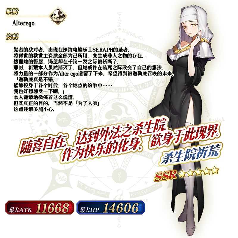在「深海电脑乐土 SE.RA.PH」中大放异彩的从者「★5(SSR) 杀生院祈荒」限时登场!