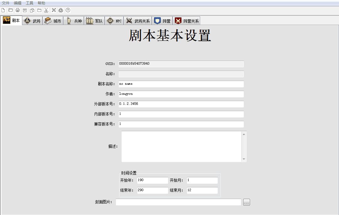 特别声明:各位玩家,剧本编辑器的定位本身就是一个高级拓展功能,它的编辑功能的本身并不是面向大众玩家的,而是给高端玩家,资深三国游戏迷,有坚韧不拔,坚持到底的大毅力的玩家准备的,因为制作一个完整的MOD剧本的编辑工作本身是一项非常繁琐、非常细致,非常累人的工作。简单举例,一个玩家要完成一个500位武将的春秋战国剧本基本要一个月的时间的。所以我们建议普通玩家还是耐心等待,等资深玩家经过漫长的制作,把成品级的完整MOD制作完成,并发给我们经过了测试,完整完备无BUG(因为如果有的东西漏填都会造成闪退或者崩溃的),我们会在新补丁里面发布出来,大家就都可以在【自定剧本】里面读取到这些玩家DIY的MOD。各位普通玩家,别急哈,给高玩一些时间。坐享其成吧!哈哈!!