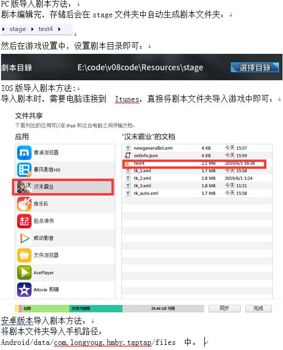 4:最后的实现层面,就是任何玩家编辑出完整的MOD剧本文件后,玩家只要把这个剧本文件拷贝到游戏剧本文件夹里(请看第四张图片,不同版本导入的方式的目录都有不同),游戏内就会自动读出此剧本,然后玩家就可以享用这个完全DIY的剧本了。非常HAP!(注:最后一张图片就是手机版导入新编剧本MOD的示意图哈!)