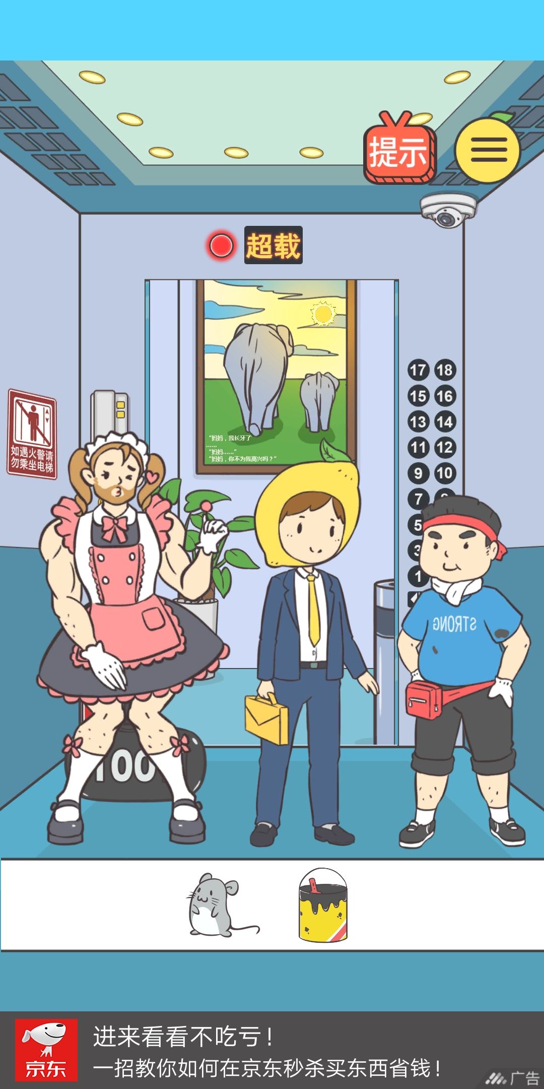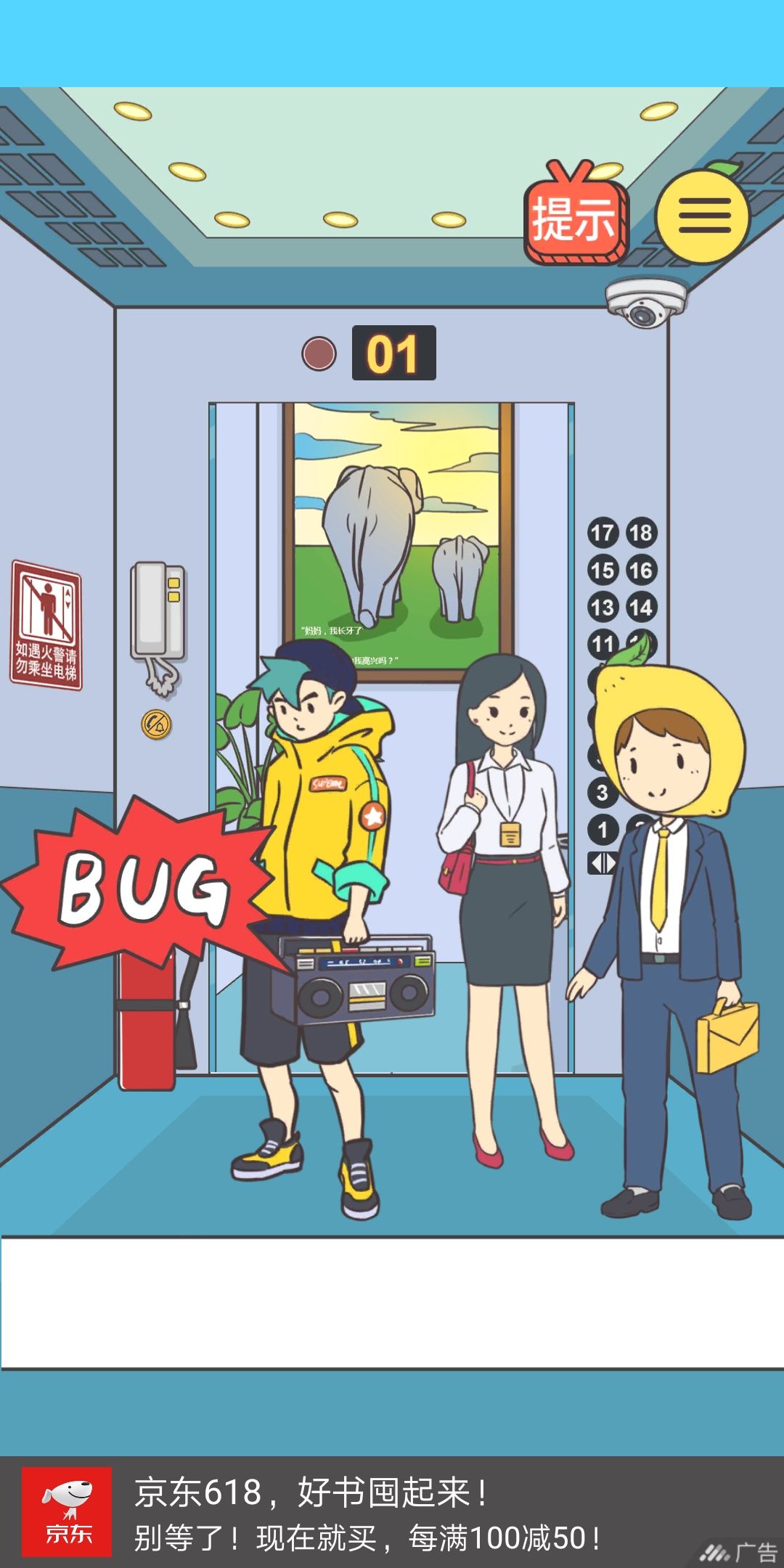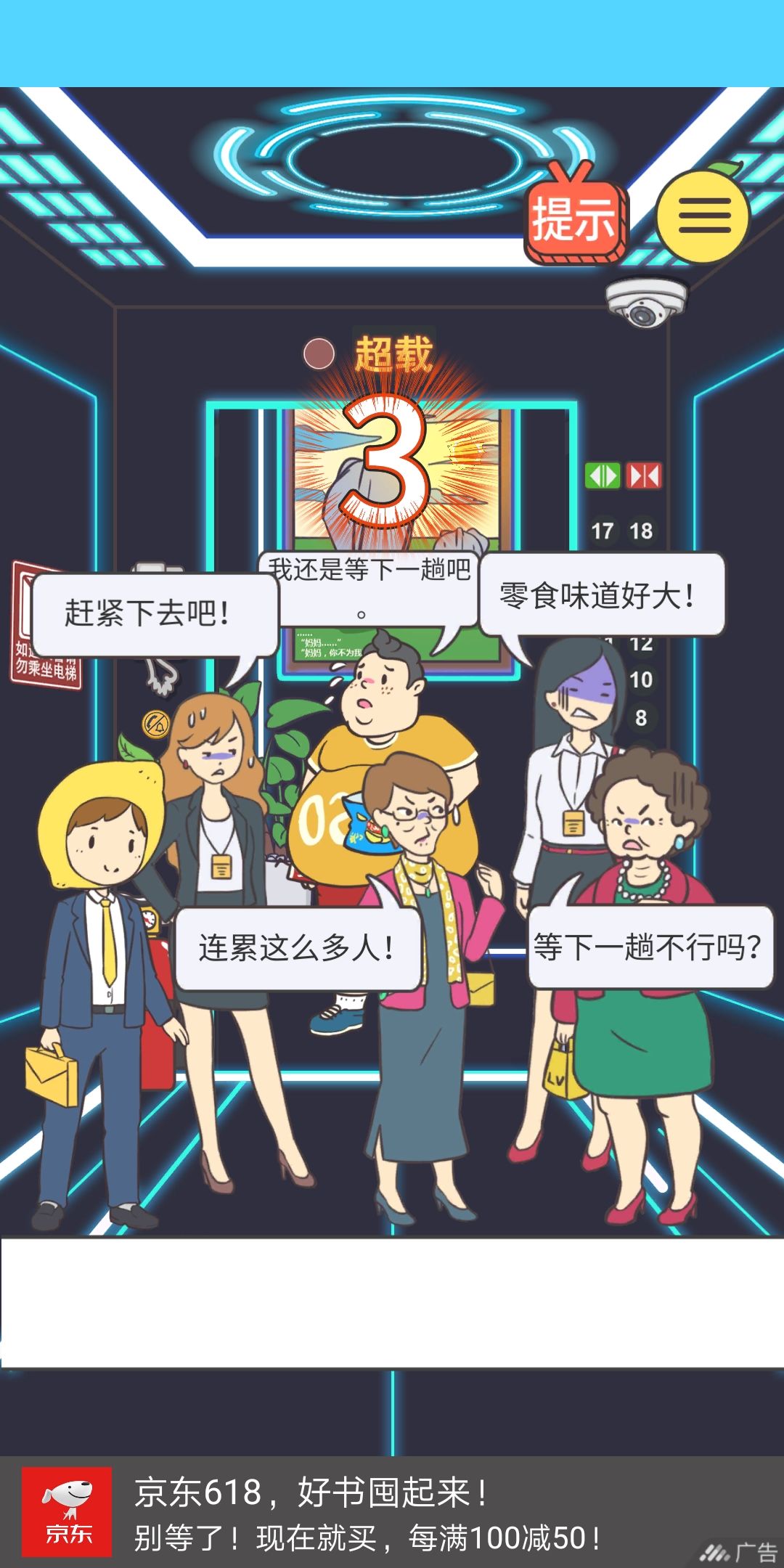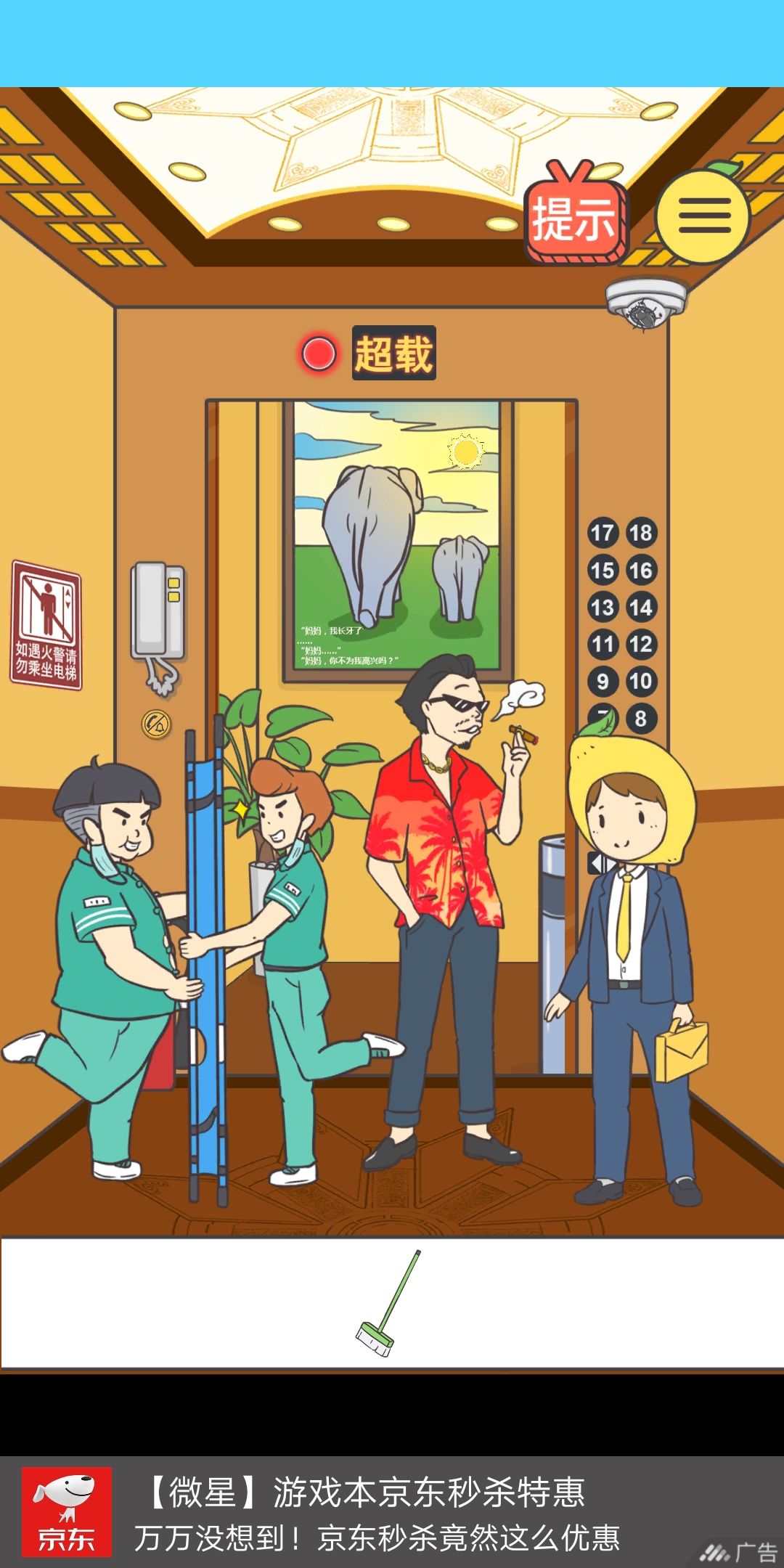 第二关:点电梯的每个人,除了胖子,胖子会停下,然后再点电梯关门
