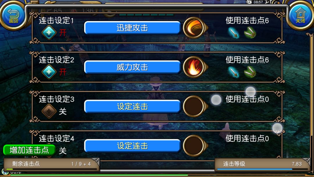 点进去就会进入技能连击设定界面