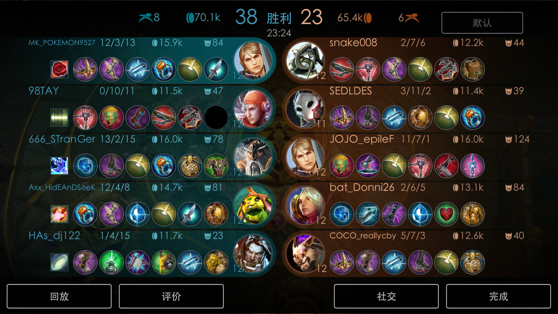 今天刚更新第一次体验了5v5,先来了一盘人机适应环境地图,然后打匹配,用了从未用过的黑羽,打出了这战绩,不是我技术好,感觉是坑多了,5v5一出又有了很多坑,个人感觉5v5做的不太好,原因可能是刚刚出玩家匹配还没太完善吧,因为挂机的太多了,还有匹配到新手不会玩的上来就送了,虚荣的特色是3v3,排位赛也是3v3才有,5v5就当匹配玩吧,最好别把5弄成有排位的模式,游戏还是坚持自己的特色,也希望未来可以更加进步