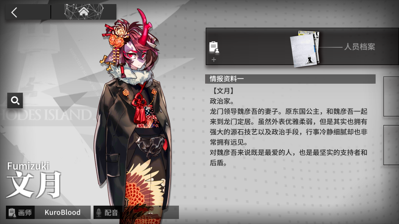 这里还有一个比较有意思的点:洪炉示岁中对文月的描述是——龙门的执政者,听说家里还有一位(普通市民魏)先生主持内务。一个主内一个主外,这无不印证或是断定了上文的观点。但洪炉示岁其本身的真实性有待考究,这里就当一个小点心吧。 文化融合不仅体现于过春节,还体现在多处:1.鲤氏侦探所。每个人说是出身于龙门,但我感觉只不过是因为他们东国的父母来到了龙门生下了他们。2.星熊的黑帮。估计是因为来龙门的东国人太多了,有这么堕数量的东国黑帮也不足为其。3.西西里人。与上一个差不多,但更多体现了龙门的自由与包容。要说西西里人的祖辈指不定还去过哥伦比亚(美国),当时的哥伦比亚也许还有啥缄默法则,到这来便是喧闹法则了。以上,欢迎指正。