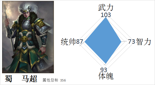 建议阵法:锋杀阵:建议将马超放在前排位置,在另一名前排的吸引,马超可以依靠高武力尽情输出。