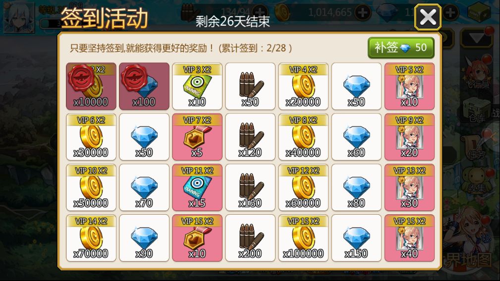 1、游戏签到,进入游戏自动签到,只要签到28天,就可以收获满满全部的福利;签到一个月就可以免费获得一个强力的3星卡,充值玩家可以直接获得4星卡牌;