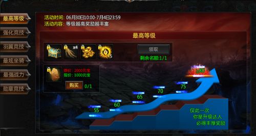 1:开服竞技:开服之后开启,达到各个等级的玩家可以领取各个等级的奖励
