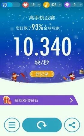 然而这并不妨碍它成为好友社交和展示手速的一大利器,过关之后,系统会告诉你超越了xxx好友,可以分享或者群发,增强了好友间的比拼。