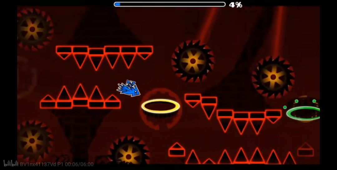 听起来非常简单是不是,然鹅进入游戏才会发现这个小方格异常的脆弱却又离奇的能造,跳跃,飞行,翻转,无所不能,往往思路一时没转过来就满盘皆输,而且如果想要听到游戏里最为精髓的节奏,你就必须选择无存档模式,这就意味着一但你失误就必须满盘皆输,所以至今很少有玩家能够听到完整的游戏音乐,只能看网站上的通关视频过过干瘾。