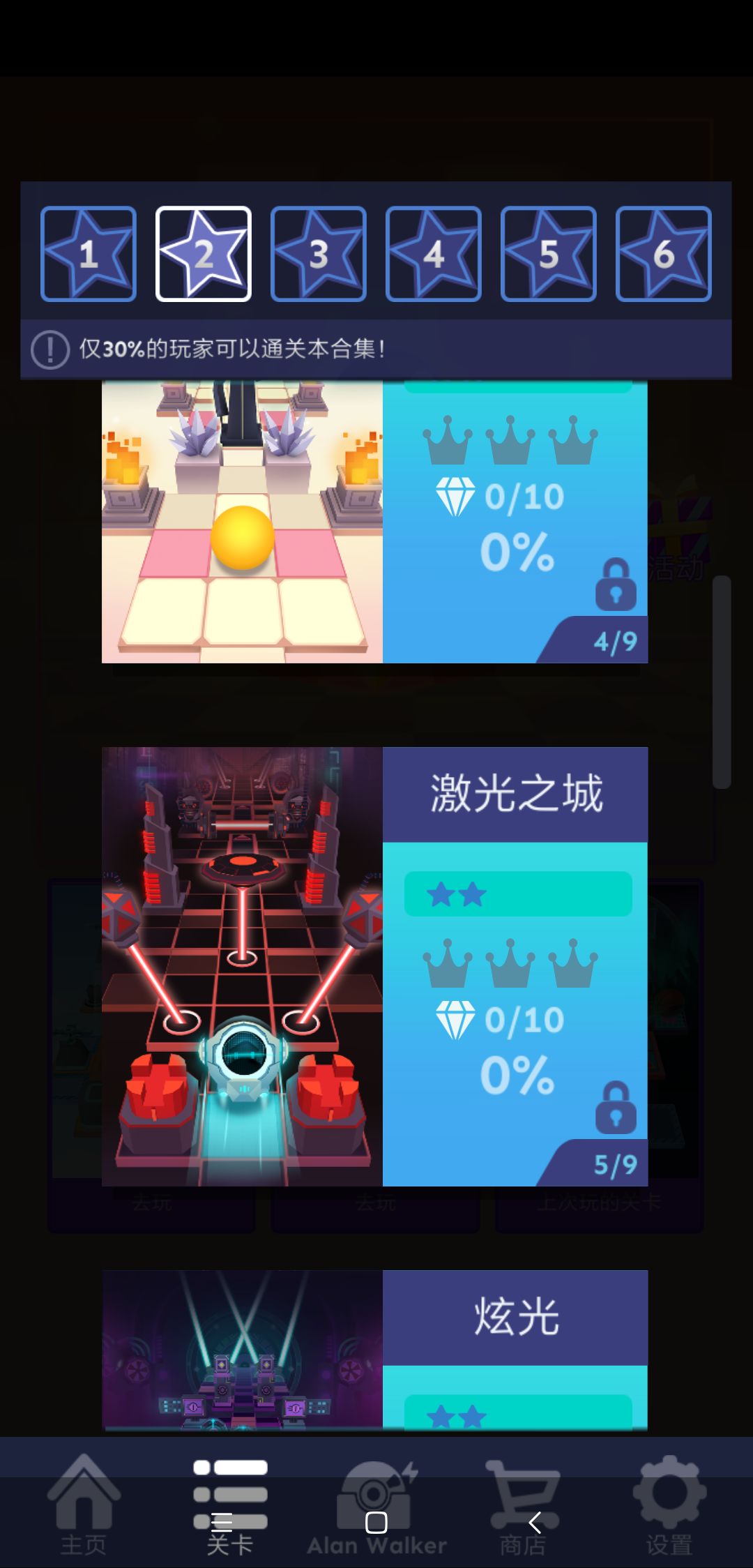 不可思议的是,每首歌曲的地图元素都是不!一!样!的!可能你上一关还在和cxk在球场打篮球,下一关就到了外太空和外星人搞比利。每关元素都有着不小的互动性,例如可以把自己弹入篮筐等等,趣味性属实不小。但也正因为元素太过复杂,所以每到一关就要重新探索每种机关的效果,各种鲜明的色彩让人应接不暇,很容易就掉入陷阱而失败,但这也是游戏的趣味性所在