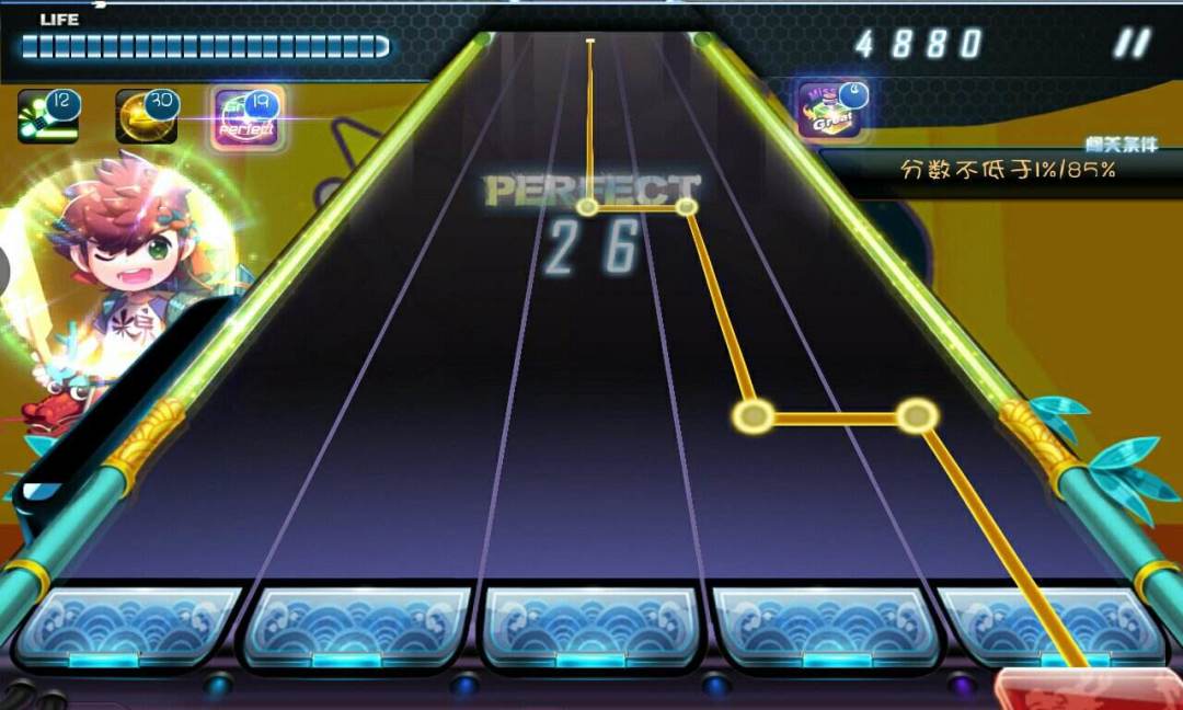 游戏没有延续其他音游的操作形式,而是尝试了全新的全屏滑动操作,更具操作性和趣味性,它只有三种音符:普通音符、锁链音符和长按音符,根据屏幕上的黑线滑动位置,点击对应的音符。