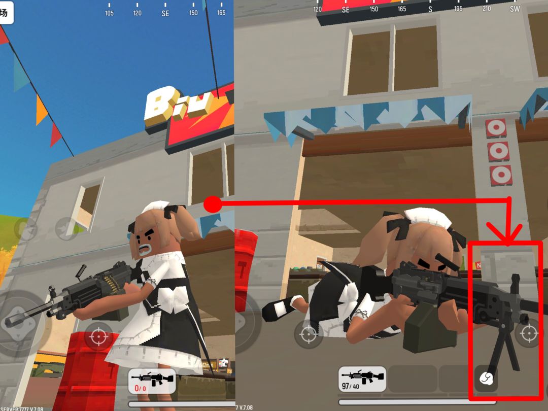 其中机枪有点特殊,小肠肠胳膊比较细,扛着机枪射击的后坐力会比较大,但是躺在地上时,机枪会张开前面的支架,射击体验瞬间稳如泰山(☄◣ω◢)☄
