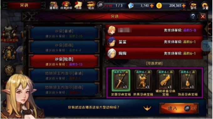 此外每日的突袭活动也可以选择需要的装备奖励进行活动。