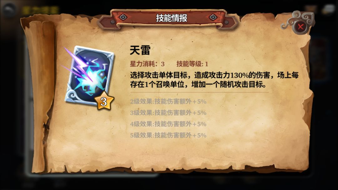 天雷也是单体输出,但是技能对于场上每多出一个建筑单位就多一道闪电,炸弹也算建筑单位,技能可以指定任意释放,收残血非常实用(我感觉这技能暴击率很高咋的)