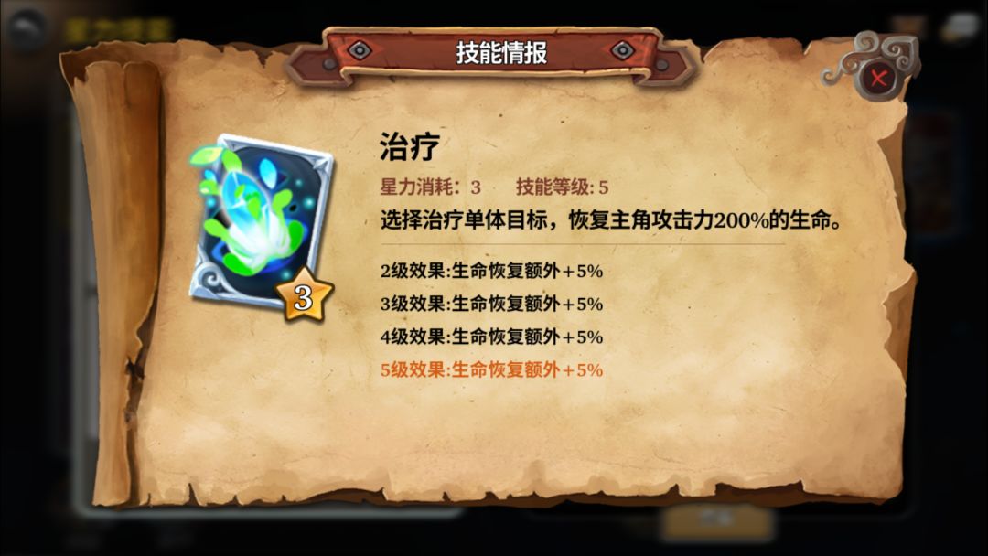 治疗:顾名思义回复技能,它属于单体治疗,3费技能整场战斗下来,技能覆盖率非常广。保护主要单位不阵亡,拉扯生存空间,非常必要。重要程度:⭐⭐⭐⭐⭐
