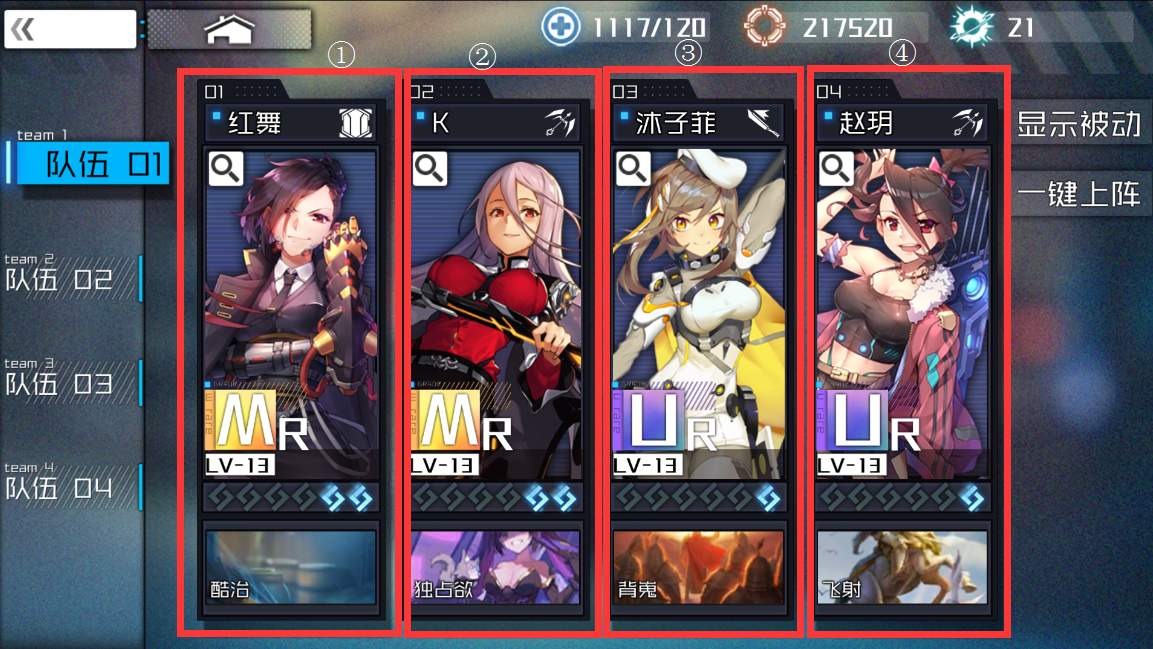 虽然说是四个固定阵型,但这阵型里的人物是可以自定义的,关键在于你的队伍四个位置。